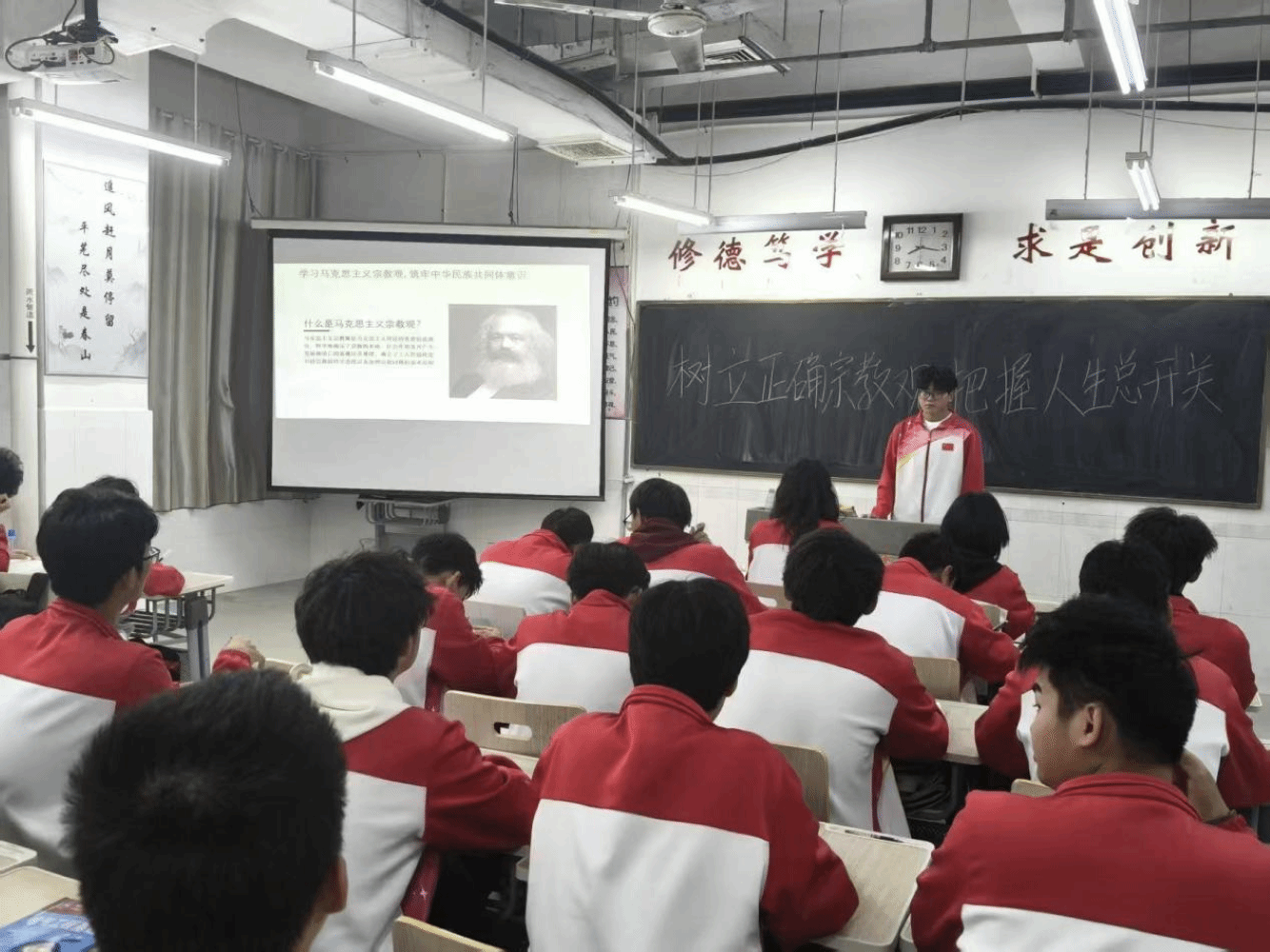 讲座上,主持人们系统阐述了马克思主义宗教观的核心观点、现实意义及其在中国的发展,深入解读其丰富内涵,并强调了新时代大学生树立科学理性宗教观的重要性。讲座中指出,青年学生应自觉学习马克思主义宗教观,坚持科学精神,正确认识宗教问题,努力成长为有清醒头脑和理性判断力的时代新人。现场同学反响热烈,围绕相关话题展开深入讨论,不仅有效深化了同学们对马克思主义宗教观理论内涵的理解,更帮助大家掌握了科学分析宗教问题的方法。