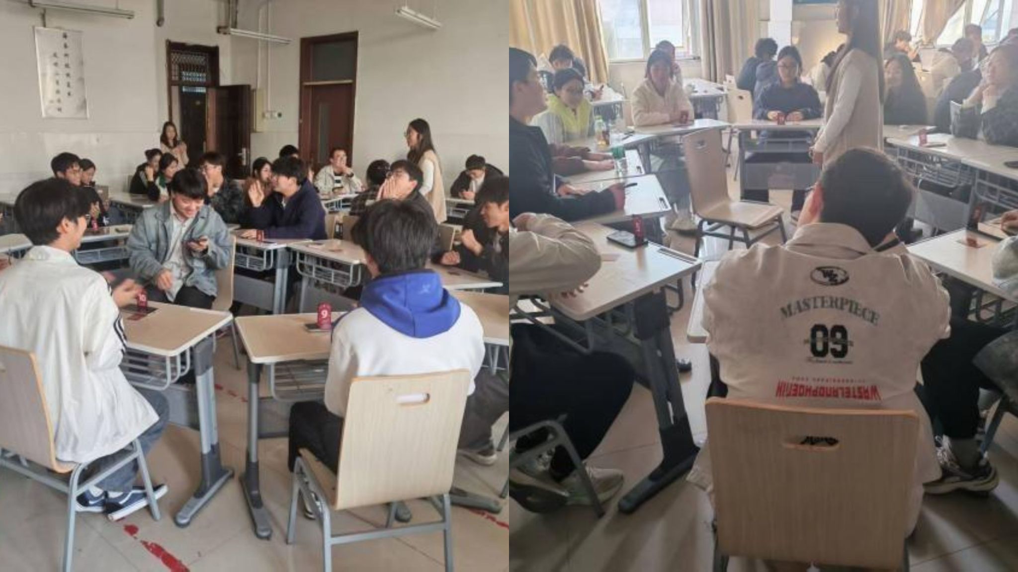活动伊始,主持人介绍了活动玩法与目的,以诙谐幽默的语气调动大家气氛。活动围绕“狼人杀”游戏展开,通过“夜晚”互动、“白天”发言与推理评价等环节,将同学们带入刺激又兴奋的游戏氛围中,让学生在趣味博弈中锻炼共情力和情绪调节能力。现场气氛热烈,掌声与笑声不断,同学们在游戏中释放压力、传递积极情绪,纷纷表示这里不再是传统意义上的沉默课堂,而是放松身心、调整状态的“心灵加油站”。