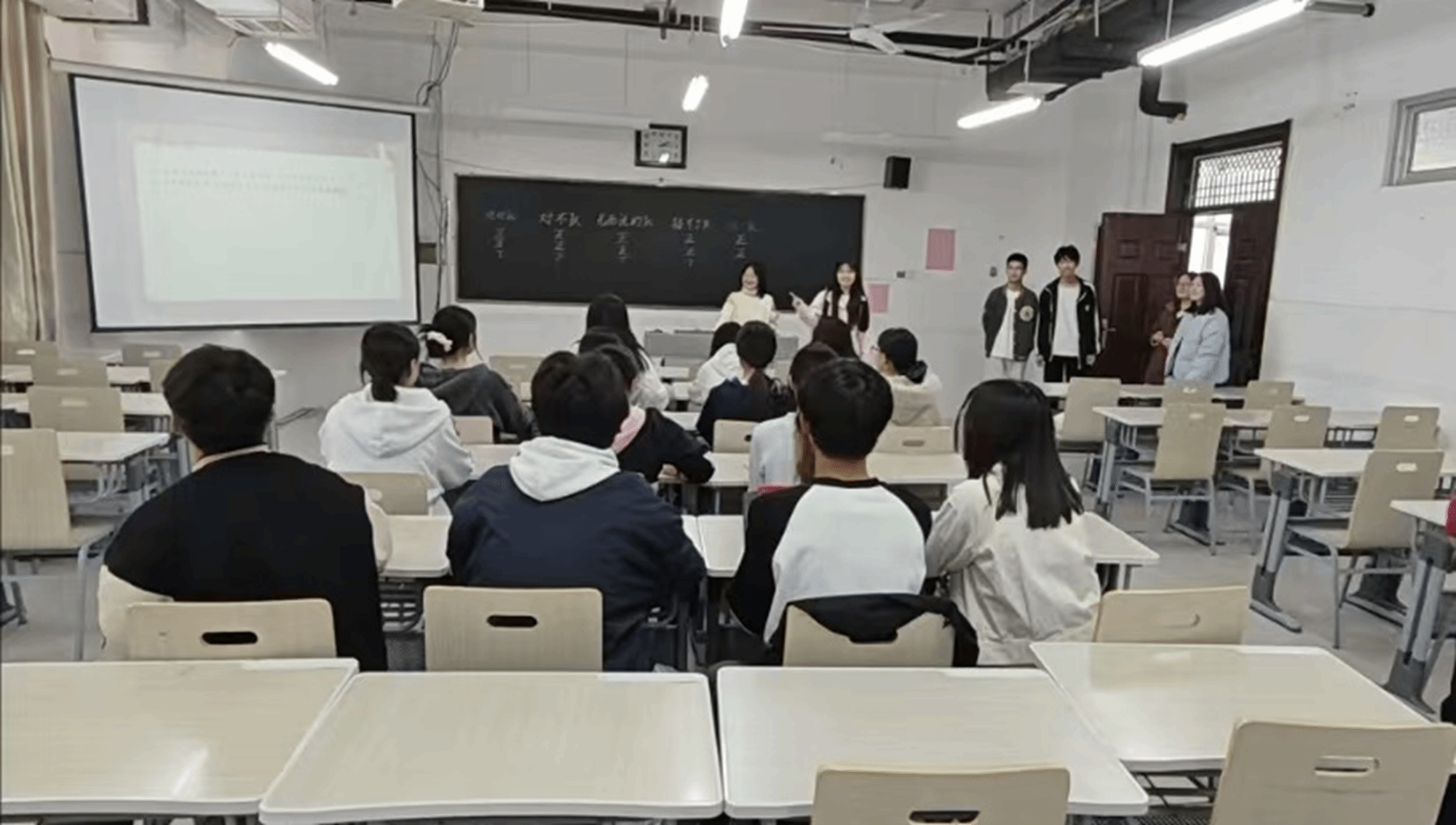核心竞答环节以“击鼓传花”的互动形式,有效融合了知识性与趣味性,花束随音乐在同学们手中传递,音乐停止时,持花者需回答紧扣视频核心内容的题目,题目涵盖典故解读、意境赏析及书法流派等需深入思考的领域。答题过程中,同学们认真思考、积极应答,现场反应热烈,掌声与喝彩声此起彼伏,每一次精准作答都是对经典的深刻诠释,每一次思维碰撞都为文化传承注入青春活力。