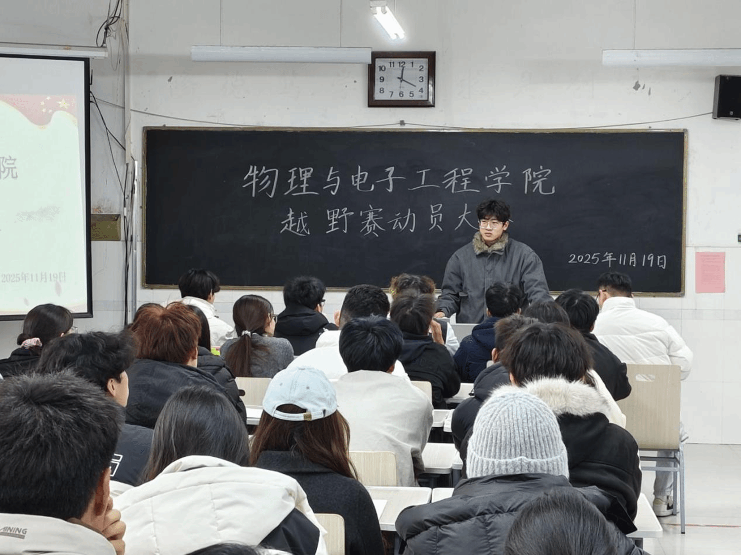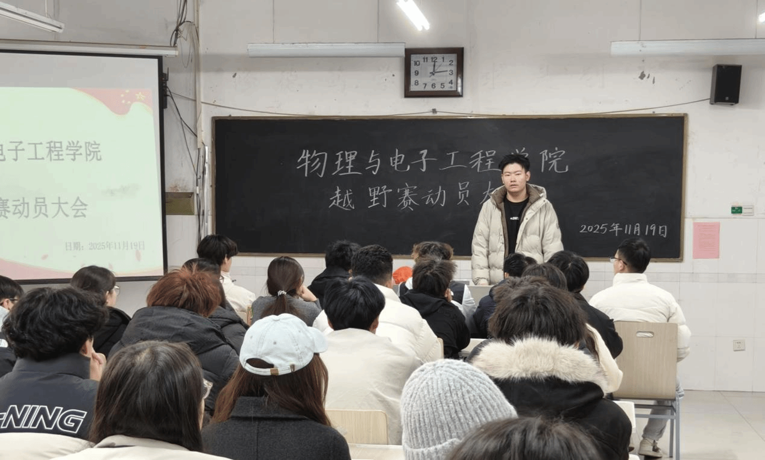 为统筹越野赛工作安排,确保各部门有序分工,11月19日,best365手机版官方网站在综合实验楼W502教室召开第四次全体例会暨越野赛动员大会。本次会议由2025届学生自律联合会秘书长王彦琳主持,李晨老师出席会议,全体学生会成员参会。