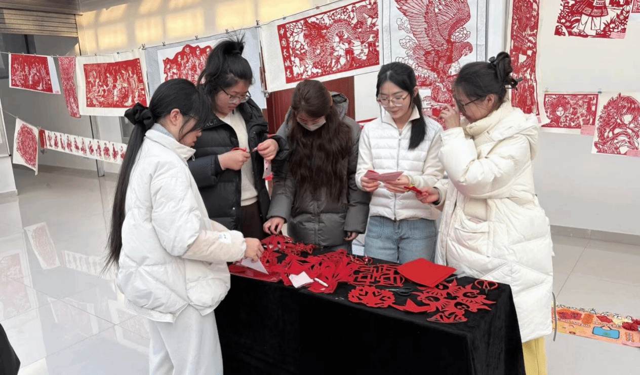 本次展览集结了学生多元形态的原创作品,剪纸的纹理、书法的笔锋、绘画的意境、影像的叙事交织呈现——创作者以青春语态解构非遗基因,用当代艺术语言转译传统美学内核,在“传统肌理”与“青年表达”的碰撞中,既锚定了文化根脉的厚重,又迸发着创新实践的活力。展厅内,师生们驻足各展位前,以沉浸式观展的姿态细察作品细节,围绕非遗与创作的融合维度展开深度交流,文化感知与艺术共鸣的氛围在现场漫溢。