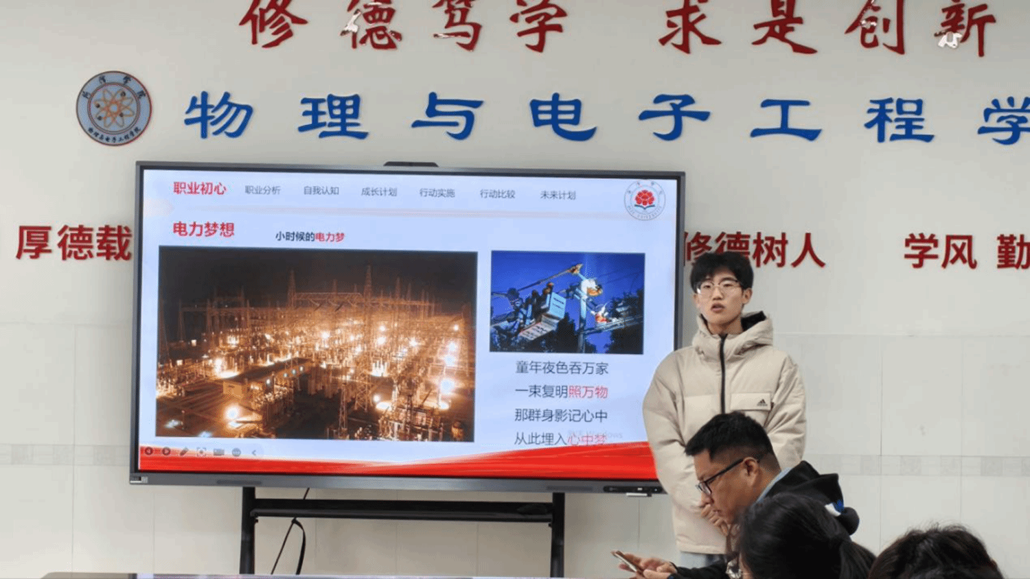 大赛伊始,选手们依次登台,结合专业方向与个人志趣,聚焦专业工程师方向,清晰阐释职业定位,发展路径及实践规划,并拆解了从技能考证到企业实习的阶段性目标,让职业路径既有目标指引,也有可落地的行动支撑。评委老师结合选手的规划细节,围绕规划可行性,逻辑完整性等进行提问,并参照行业趋势给出针对性指导意见。现场洋溢着青春奋进的热情,传递出明确职业方向的笃定感,让学生在表达交流中提升技能,理解职业素养的重要性。