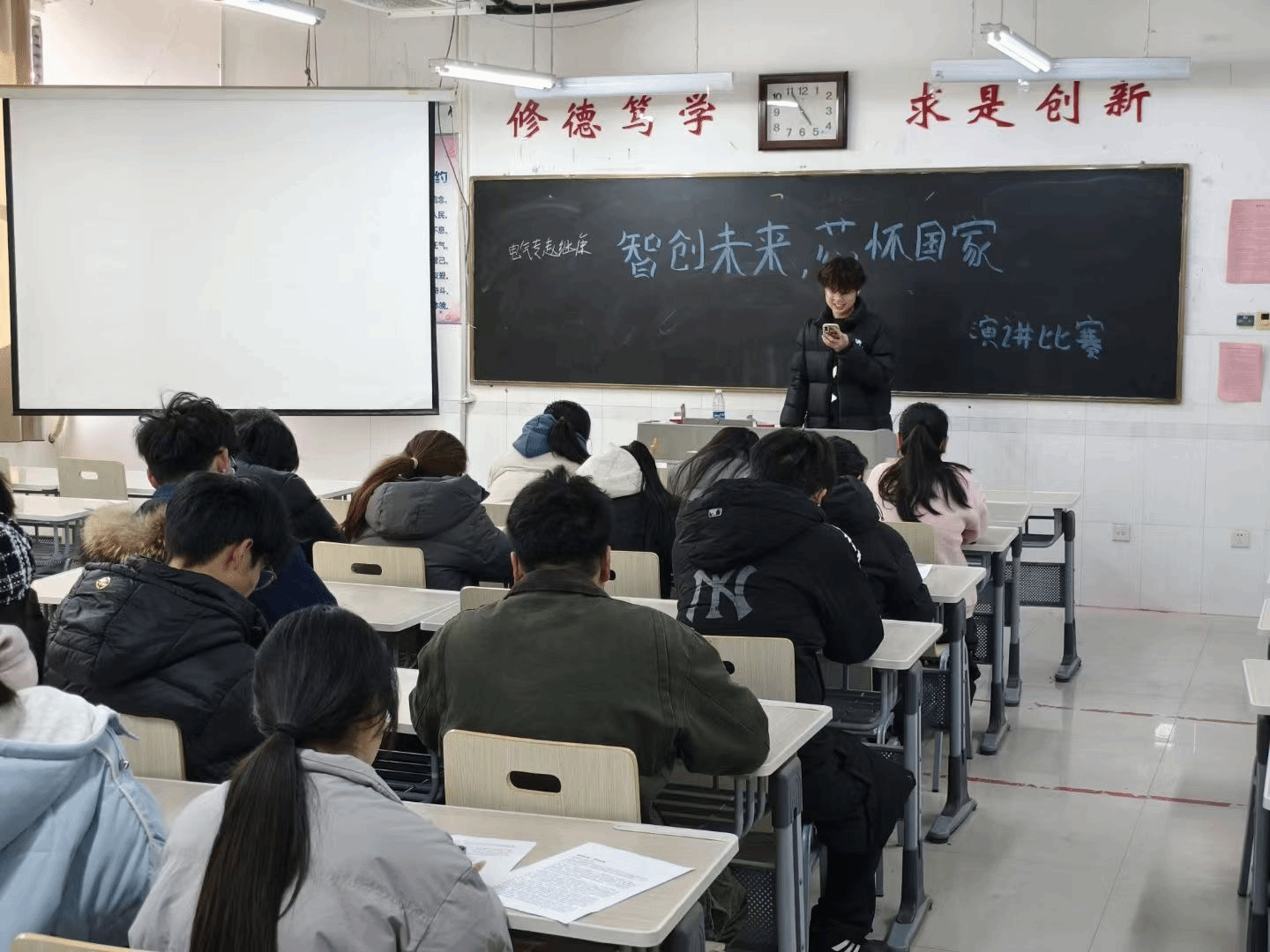 为厚植学子科技报国的家国情怀,搭建电子前沿技术交流展示的专业平台,12月14日,best365手机版官方网站在综合实验楼W501教室开展“智创未来,芯怀家国”电子科技创新演讲比赛。
