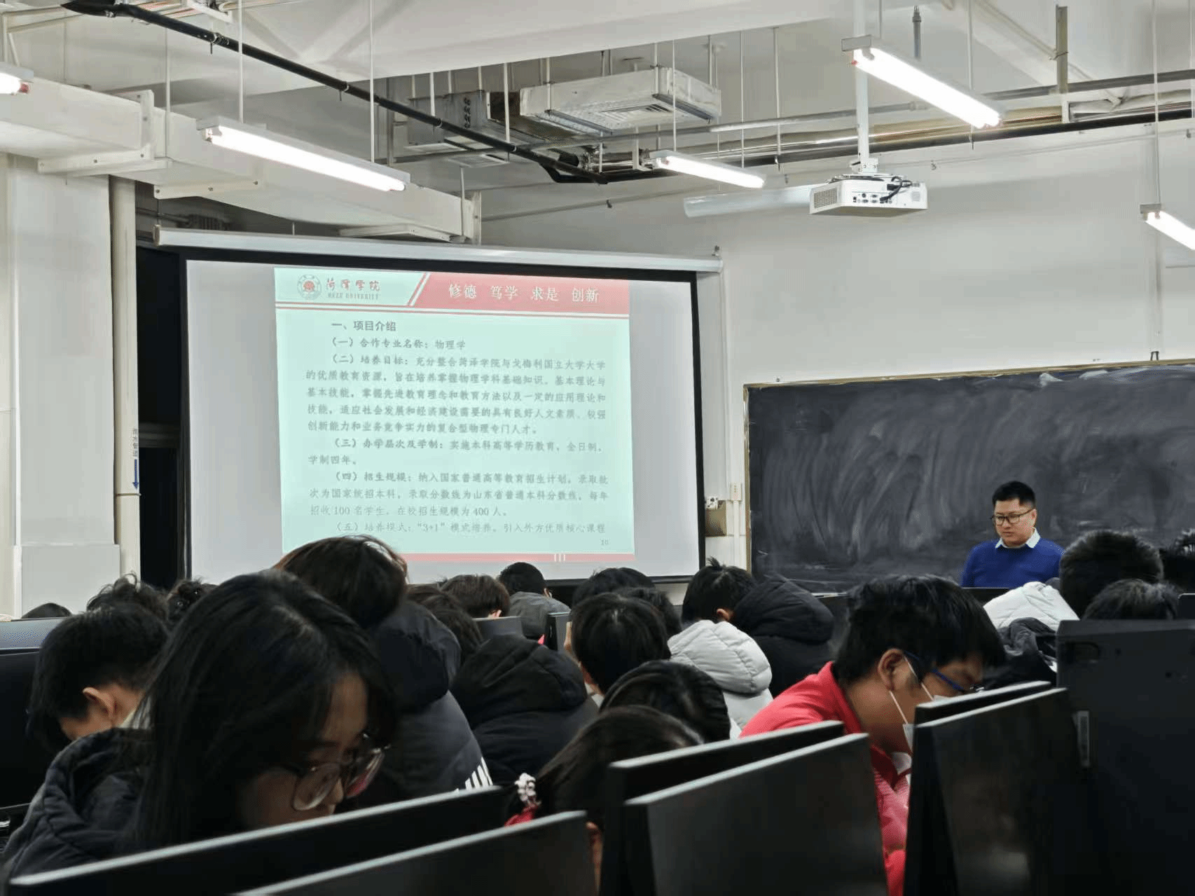 为帮助2025级物理学专业学生精准把握人才培养方案核心要义,明确学业目标与发展路径,12月11日,best365手机版官方网站在综合实验楼W406召开人才培养方案解读讨论会。物理学专业负责人李玉山老师走进2025级物理学一班和二班,与同学们面对面开展交流讨论活动。