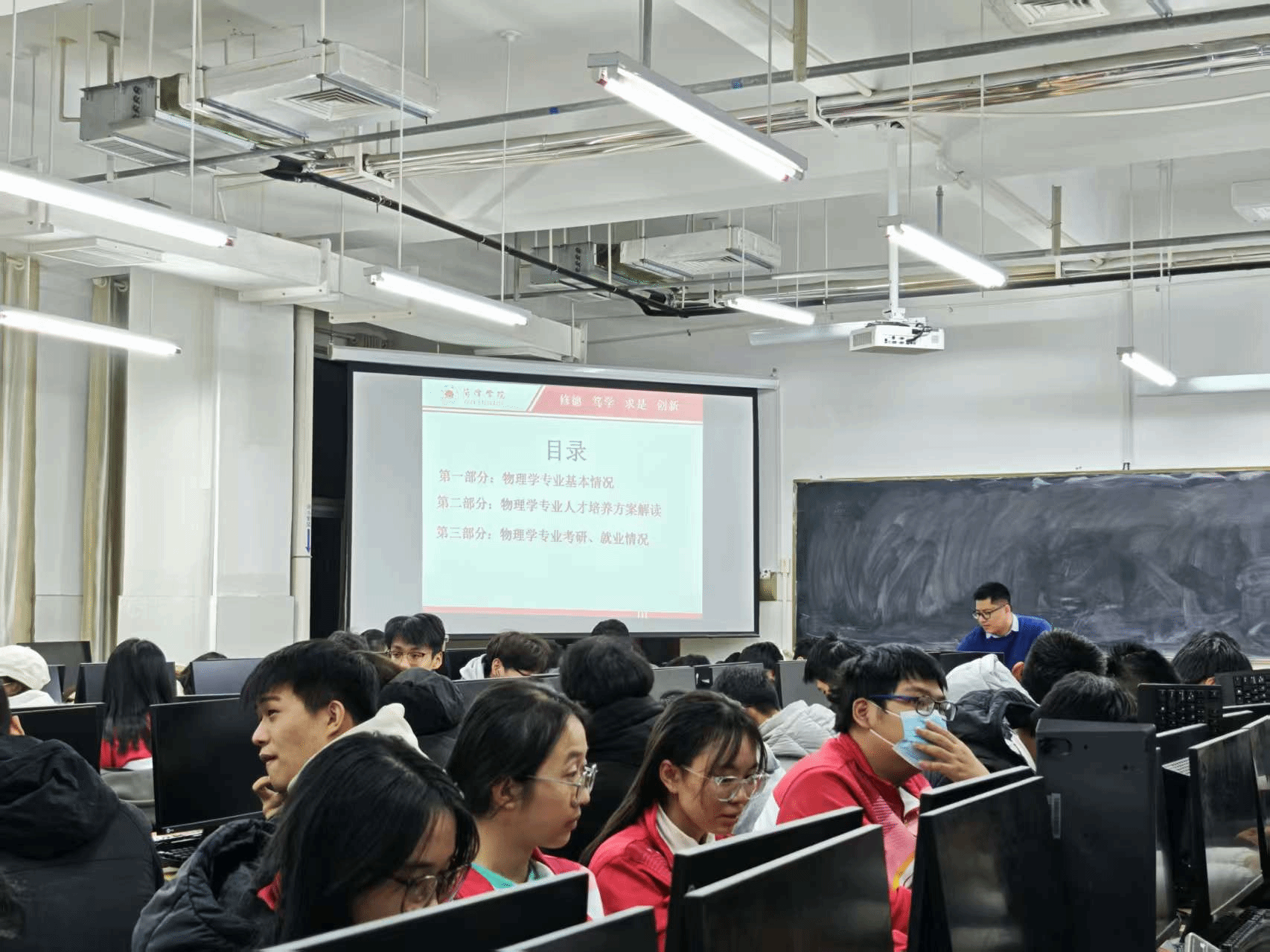 李玉山老师首先对人才培养方案进行了全面细致的解读。他重点阐述了培养目标与毕业要求,课程体系与教学安排,通识课程、学科基础课程、专业核心课程及实践教学环节的学分要求等问题。他还深入介绍了物理学专业的特色发展模块,为学生个性化发展提供清晰指引。