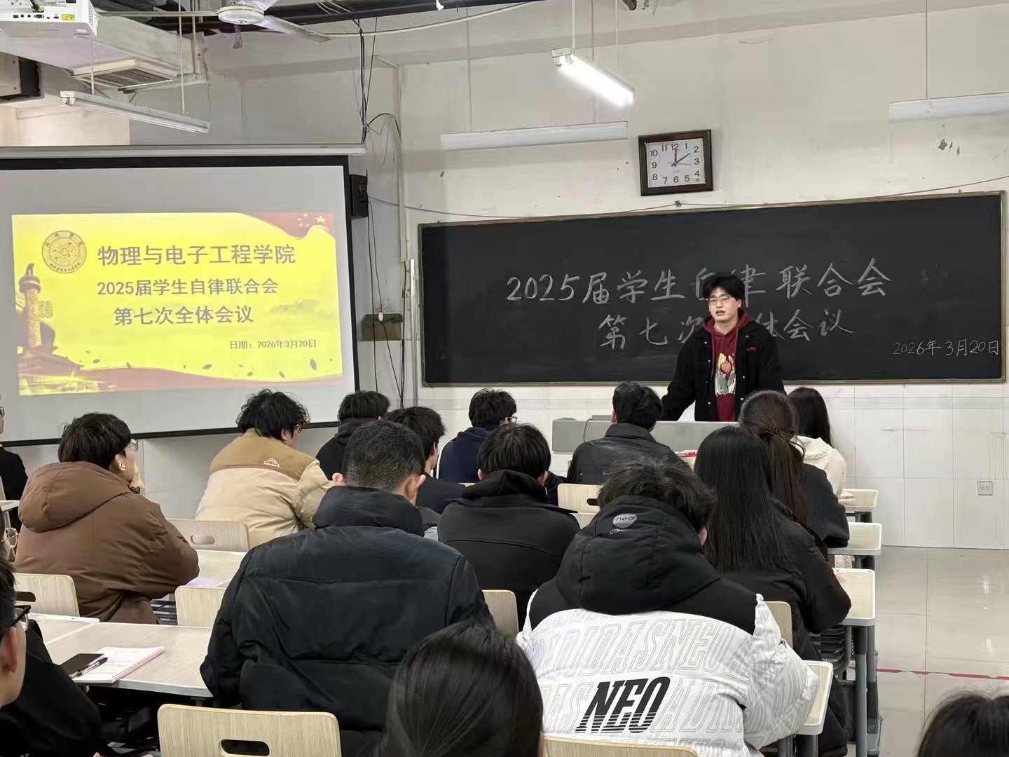 为保障本学期自律会各项工作平稳有序开展,切实加强班风建设与班级管理实效,3月20日,best365手机版官方网站在综合实验楼W502教室召开2025届学生自律联合会第七次全体会议。本次会议由学生自律联合会主席刘招锦主持,自律会全体成员参会。