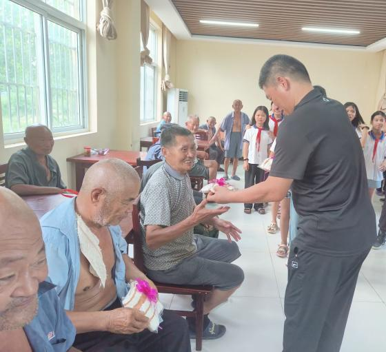 活动后,领导老师们以及三下乡服务队全体成员带领十三位东北村曹楼小学学生去沙土镇中心敬老院看望老人,在炎炎夏日为他们带去了西瓜、矿泉水和毛巾,让老人们感受到了独属于夏日的清爽。一双苍老的手和一双稚嫩的手握在一起便构成了“和谐”。通过此次活动的开展学生们纷纷表示,我们会传承中华民族尊老爱幼的传统美德,将“雷锋精神”一直传承下去!