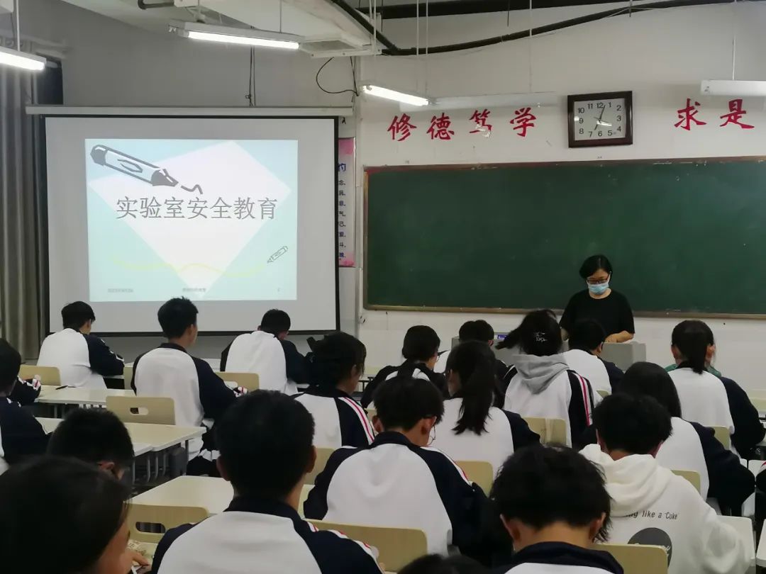 会上,各班班主任向同学们强调了认识实验室安全的重要性以及实验前须知的重要事宜。同时,老师们向同学讲解了实验室安全应急处理方法、实验室安全处置顺序、致电求助需要说明的内容和实验室各项规章制度等。随后,老师带领同学们认识了各类危险品分类及标识。最后,老师讲解了各类灭火器的正确使用方法。