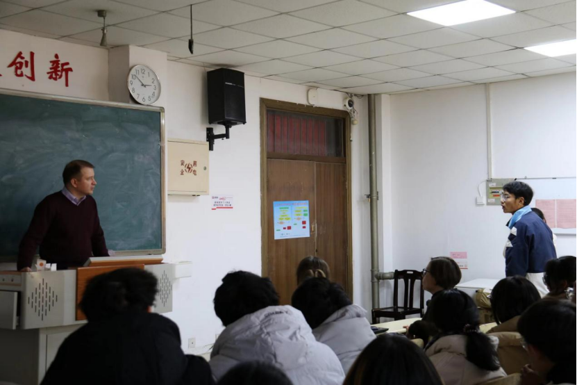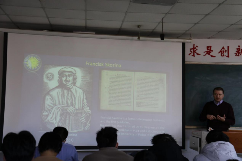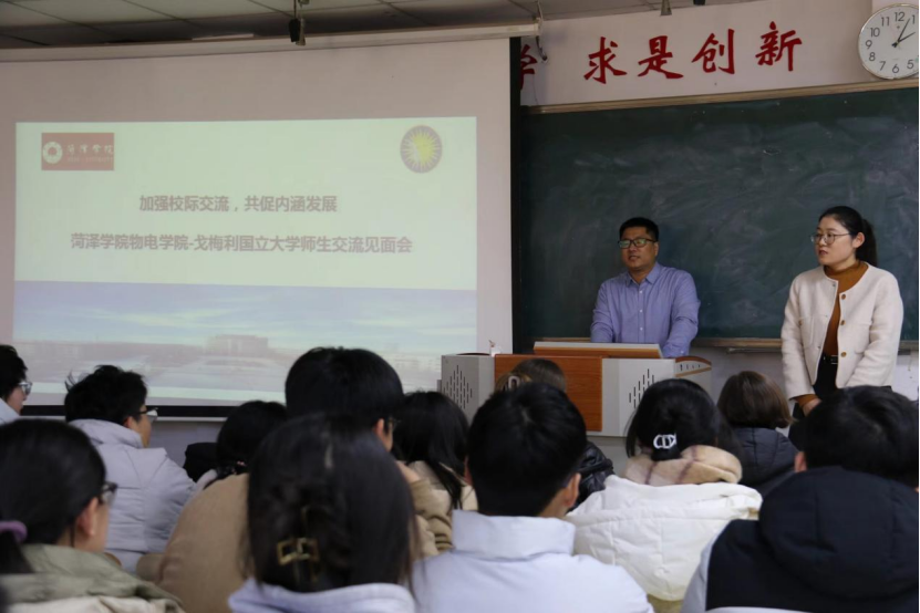 会议开始,刘淑莹老师先进行自我介绍,并对三位戈梅利国立大学博士的到来表示热烈的欢迎,之后三位外教老师分别进行自我介绍,随后在同学们的掌声下BabichKanstantsin(康斯坦丁)博士介绍戈梅利国立大学的基本情况,首先是介绍了戈梅利国立大学的现状,如教学环境、教学科目、教师情况、学生生源、国际合作院校、科研项目与成果等,其次详细介绍物理与信息技术学院和科研实验室。最后进行自由互动环节,best365手机版官方网站的学生积极询问问题,外教老师在相关方面给出专业的建议和讲解。