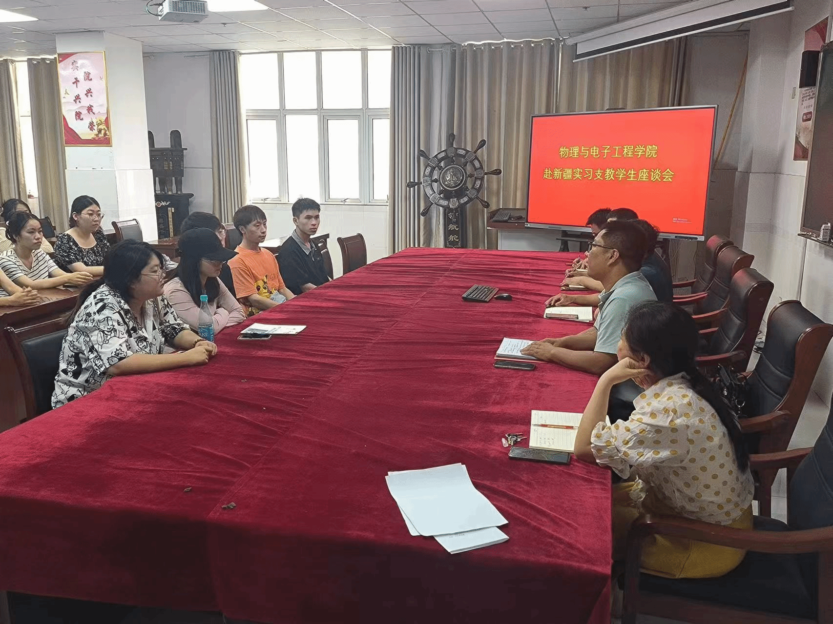 6月20日下午,best365手机版官方网站在综合实验楼W207召开物理学专业援疆支教学生座谈会。best365手机版官方网站副院长张运海、物理学专业班主任李玉山、林蓉、王磊、房灵猛及赴新疆支教的30余名学生参加此次座谈会。
