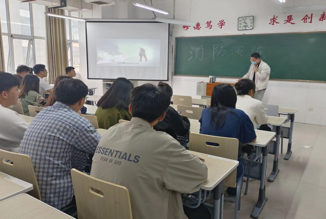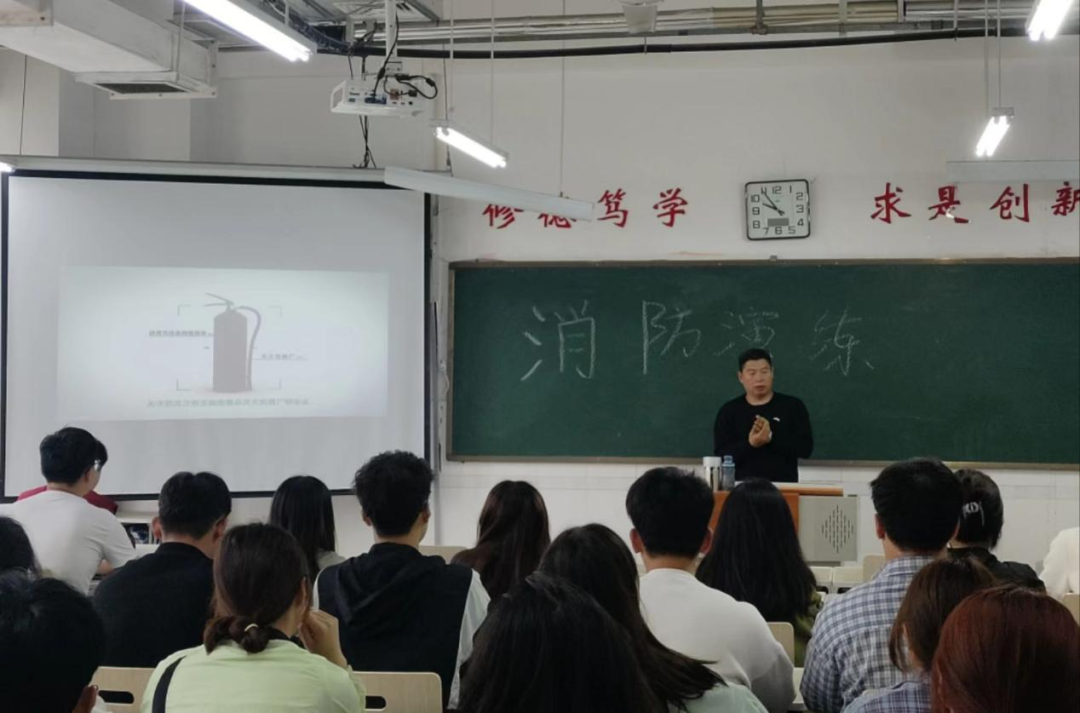 上午十点,学生自律联合会全体成员在综合实验楼W504集合,祝清森首先分析了火灾的各种情况,并讲解了不同灭火器的使用方法。随后,李晨向同学们讲解疏散通道的划分和疏散先后顺序,播放视频让同学们进一步学习应急疏散时的正确做法。全部准备就绪后,警报拉起,全体成员有序进行快速疏散,一分十秒内全部疏散完毕。