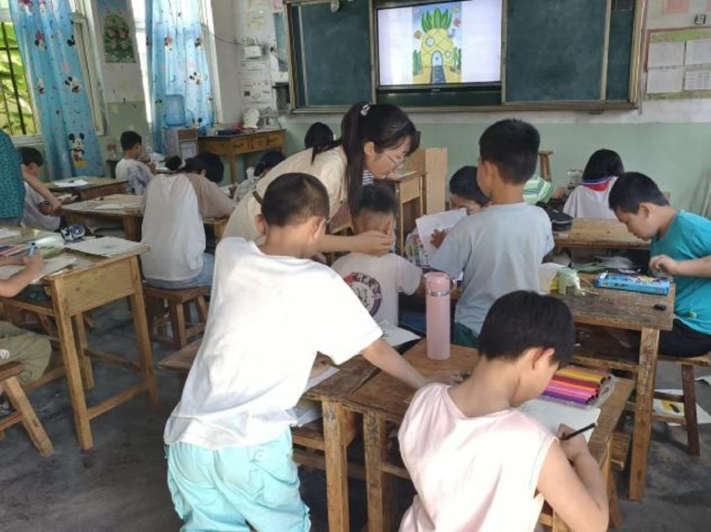 下午,两位实践团成员给同学们讲解英语单词,不仅让同学们的英语知识得到提升,而且大大提高了同学们学习英语的积极性。另外两位实践团成员给小朋友们上了一节充满艺术气息的美术课。在课上,实践团成员耐心教同学们进行美术创作,小朋友们也充分发挥自己的创造能力,制作出了许多优秀的作品。