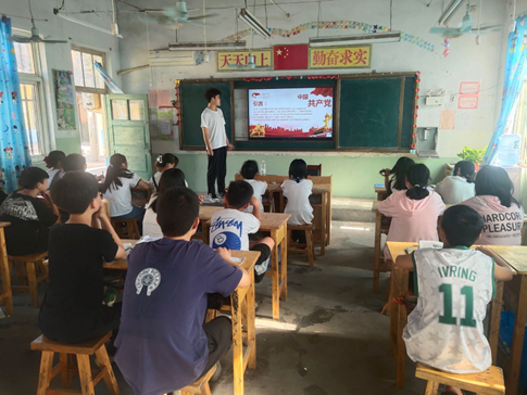 7月8日,best365手机版官方网站“红色记忆志愿服务队”在沙土镇东北村曹楼小学继续开展第四天的井冈山精神宣讲。