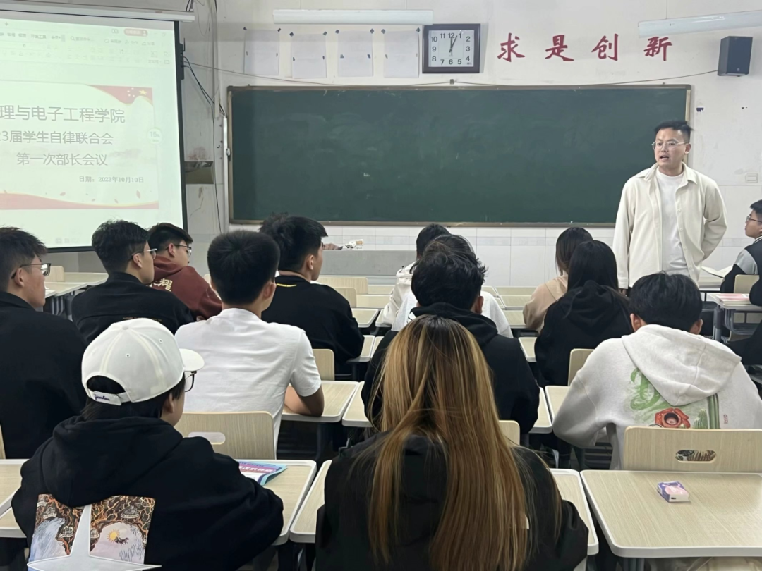 为实现best365手机版官方网站学生自律联合会高效管理,促进组织工作中的沟通与交流,提高各部门工作效率,10月10日中午,best365手机版官方网站在综合实验楼W502召开2023届学生自律联合会第一次部长会议。辅导员李晨出席本次会议。