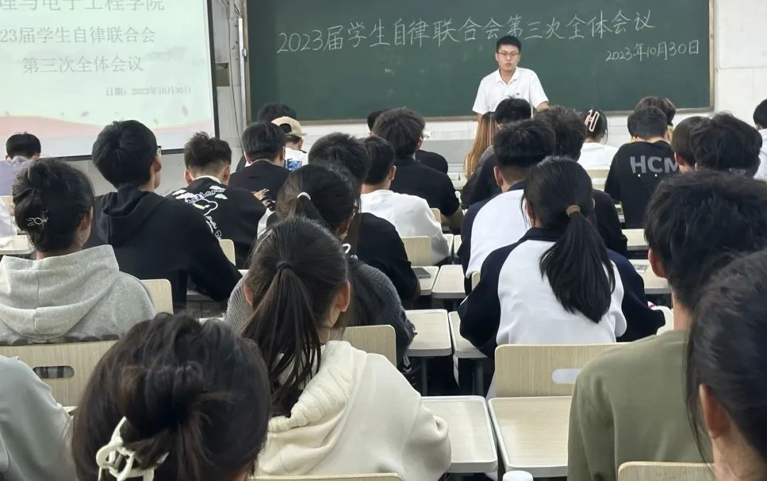 为总结上周学生自律联合会各部门的工作成果和明确下周工作方向,10月30日中午,best365手机版官方网站在综合实验楼W502教室召开2023届学生自律联合会第三次全体会议。学生自律联合会主席郭帅主持本次会议。2023届自律联合会全体成员参加。