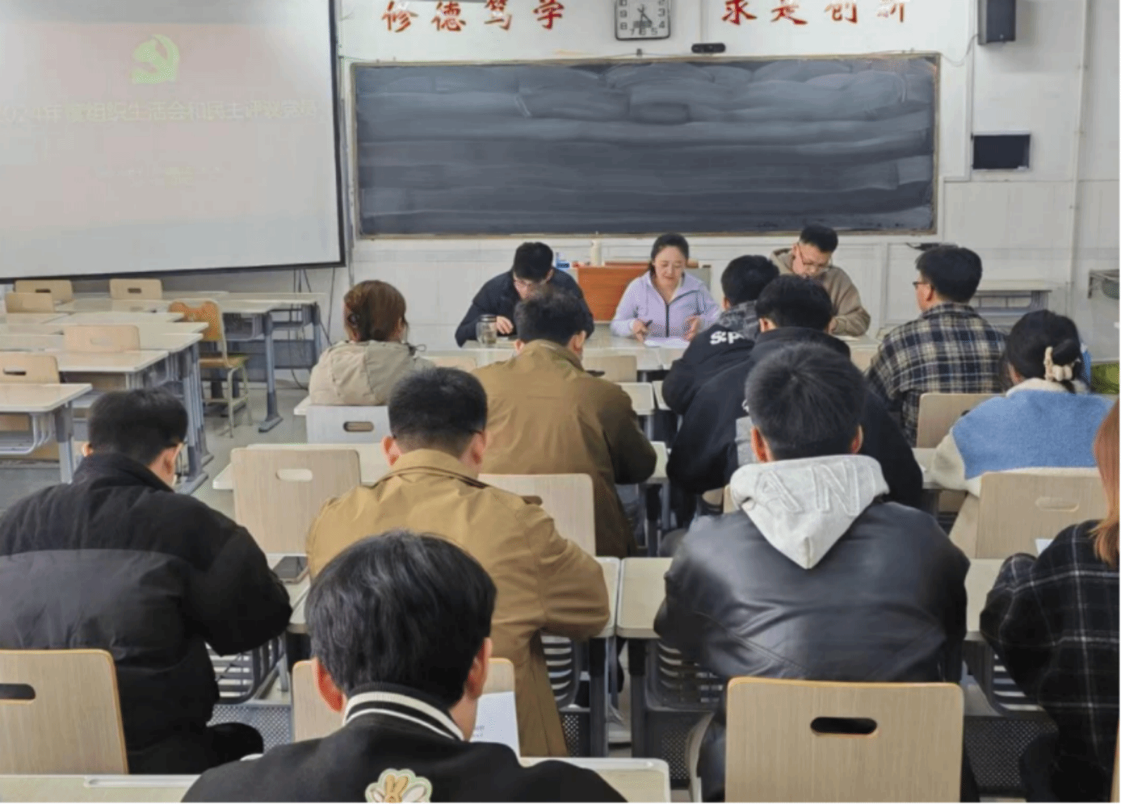 为深入学习贯彻习近平新时代中国特色社会主义思想,进一步加强基层党组织建设,按照上级党委要求,3月10日下午,best365手机版官方网站学生第一、第二党支部分别于综合实验楼W504和W514教室召开2024年度组织生活会和民主评议党员会议,会议由学生第一、二党支部书记王影、董双双主持,全体党员参加会议。