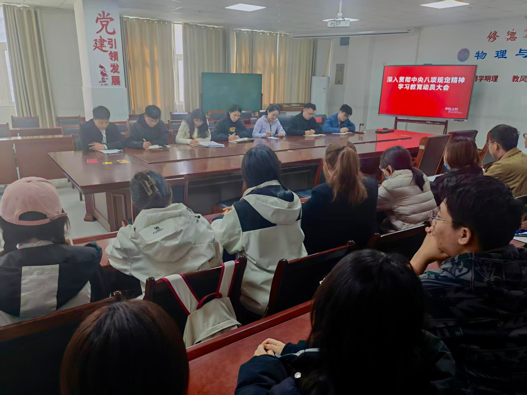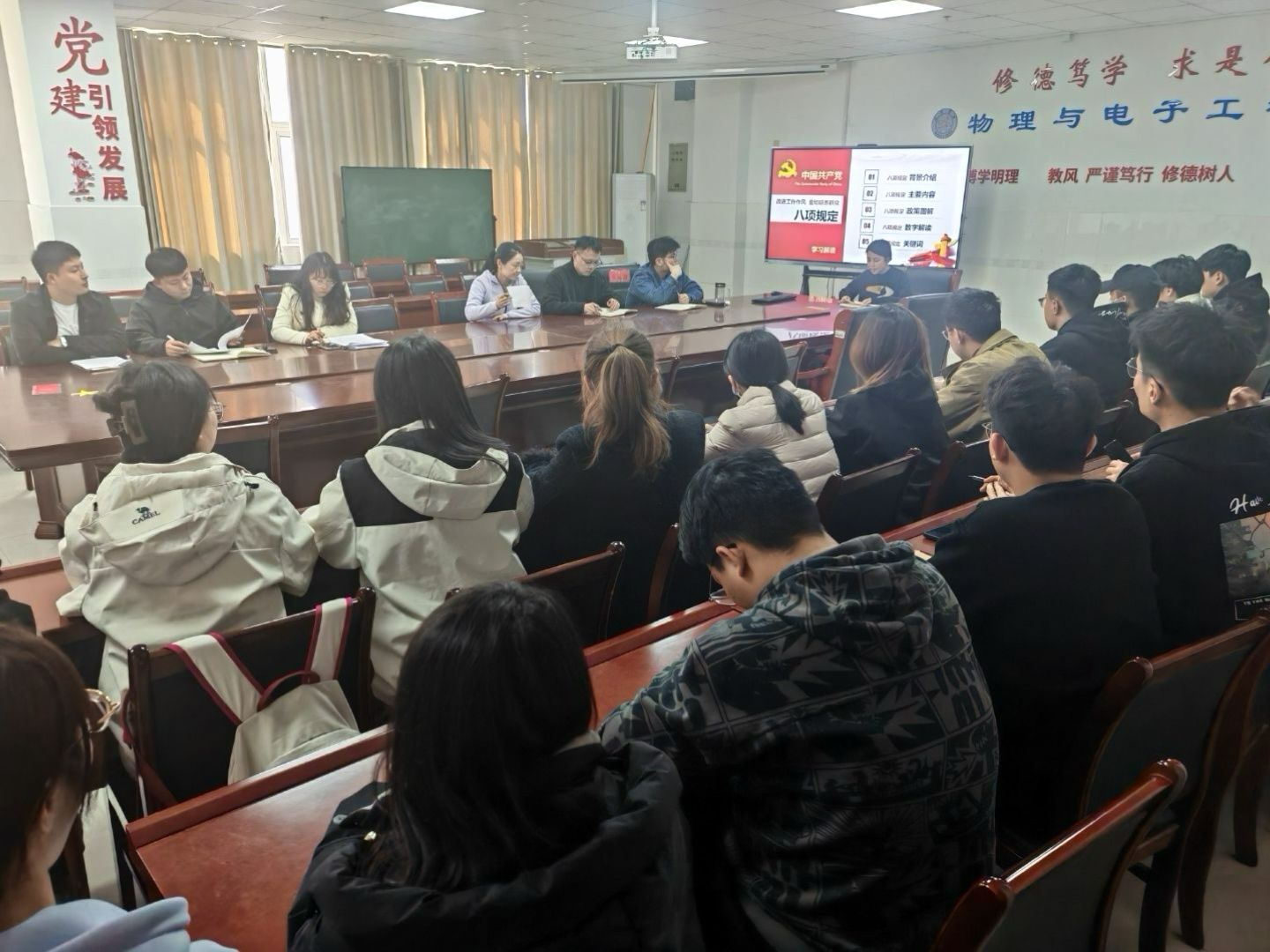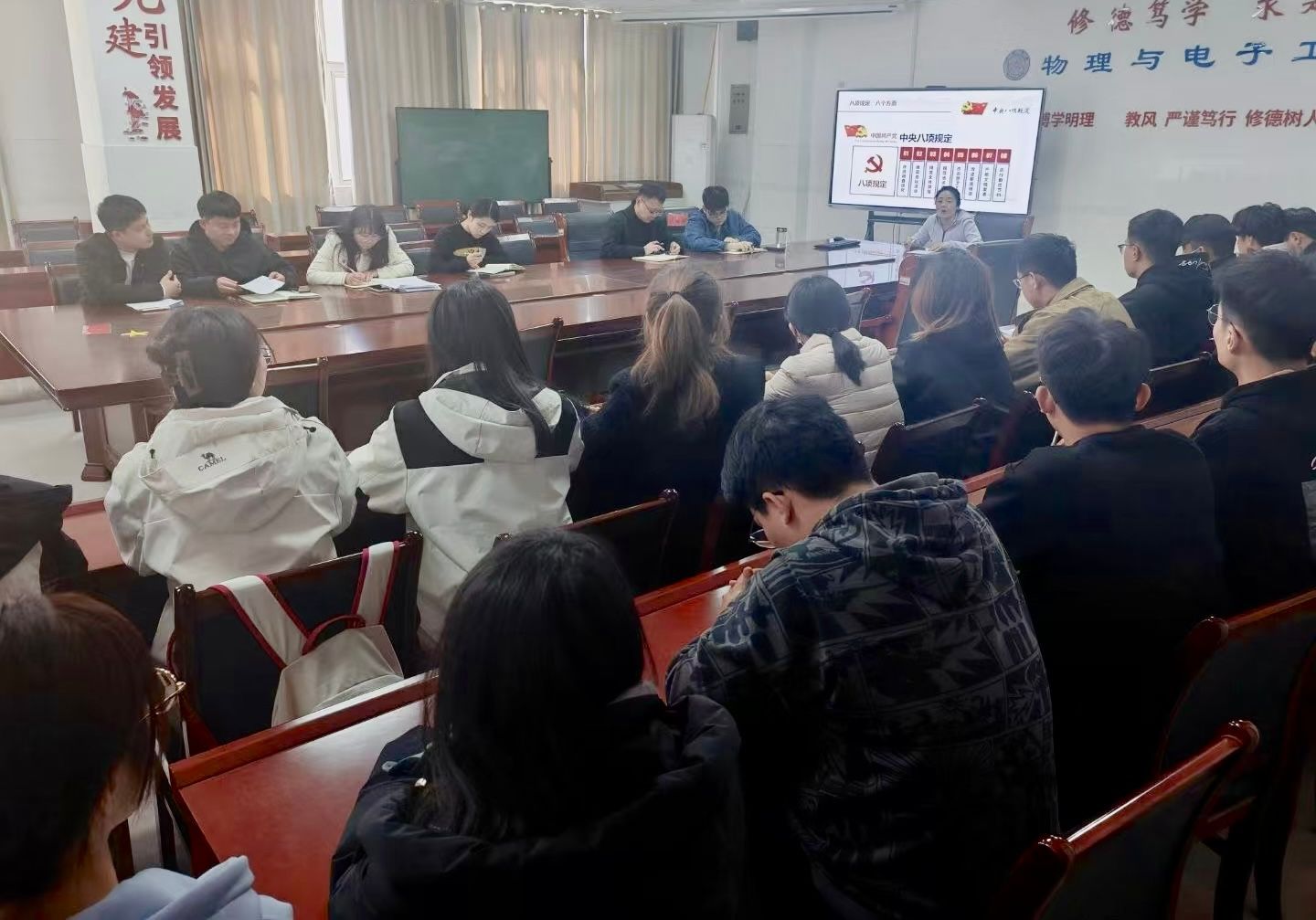 近日,党中央决定,自2025年全国两会后至7月在全党开展深入贯彻中央八项规定精神学习教育。3月20日,best365手机版官方网站学生第一、第二党支部在综合实验楼W207召开动员大会,认真落实学校党委关于深入贯彻中央八项规定精神学习教育工作的部署要求。会议由学生第一、第二党支部书记主持,学院全体辅导员及学生党员参加会议。
