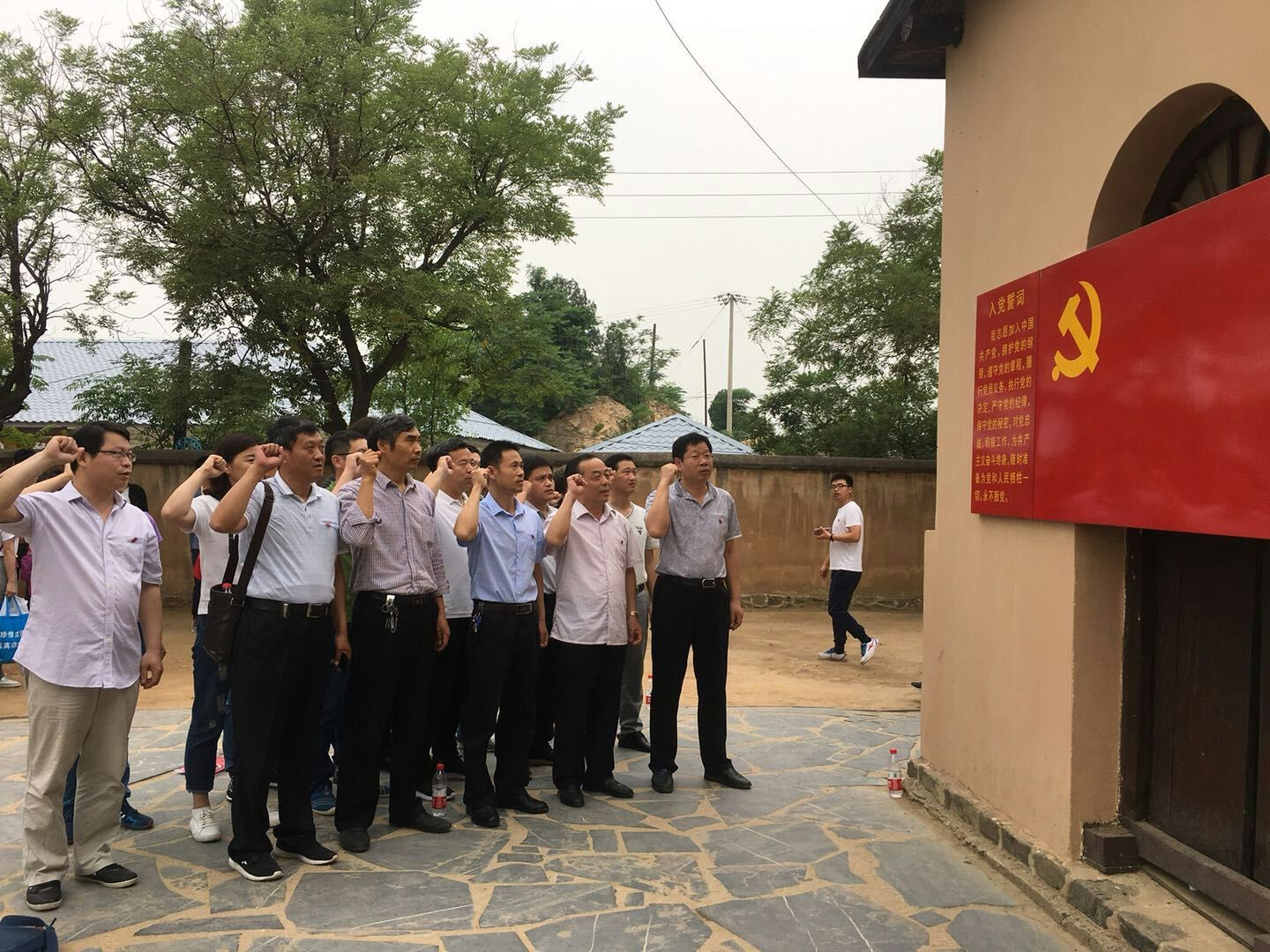 在西柏坡,全体党员先后参观了党的七届二中全会会址、中共中央旧址、西柏坡纪念馆。并在七届二中全会会议旧址前,面对鲜红的党旗,全体党员共同举起右手,一起重温入党誓词。