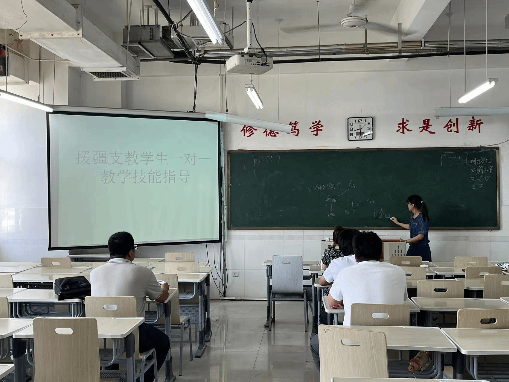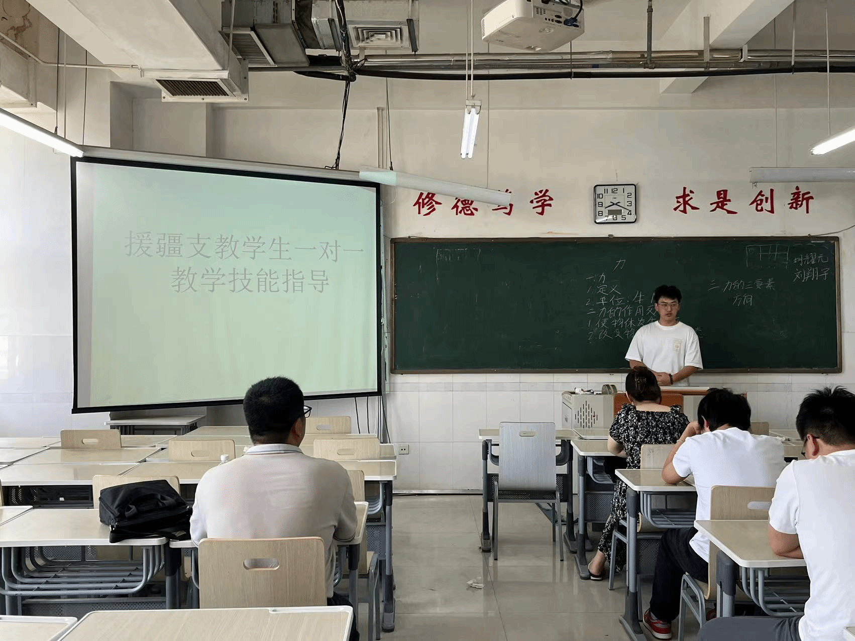 为提升援疆支教工作质量,提高物理学专业师范生培养质量,落实我为师生办实事主题党日教育活动,物理系教工党支部李玉山、王磊、杨兆刚、林蓉利用周末时间对援疆实习支教学生开展教学技能提升一对一指导活动。